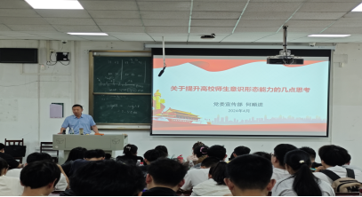 5月16日,党委宣传部常务副部长何顺进围绕《关于提升师生意识形态能力的思考》,讲解意识形态的重要性及提升途径,呼吁学员不断充实自我理论知识,提升自己的思想境界。