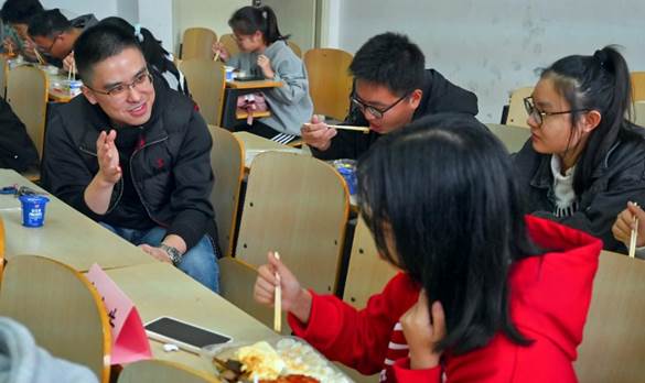随后,学院开展了2022级全体学生学业导师见面会,此次学业导师见面会以师生共进午餐的形式开展,午餐由导师为学生们购买,学业“午餐会”上老师向同学们介绍了专业的学科特点、培养计划、就业前景等,从学习和生活两方面为学生们提出了有益建议。这场别出心裁的“午餐会”,既创造了轻松愉快的交流环境,拉进了师生之间的距离,更为师生创造了良好的沟通氛围,提供学术思想交流平台。