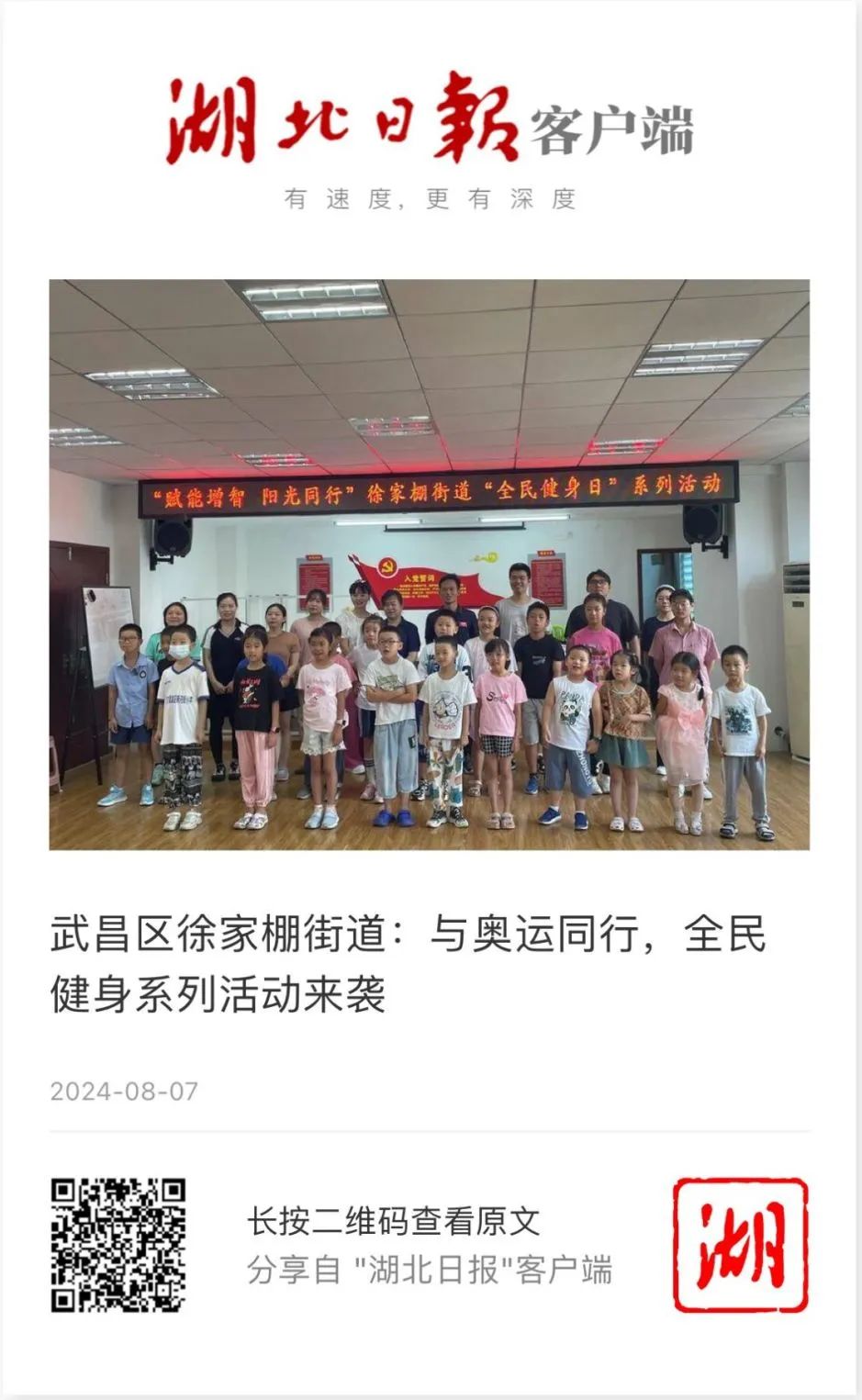 “微光启智,同行健康”青少年暑期健康训练营暑期社会实践活动获湖北日报报道。
