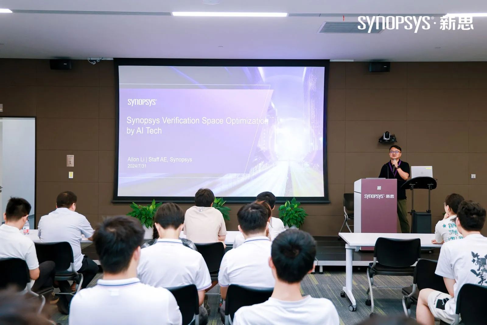 在新思科技一楼会议室,该公司校招负责人向实践团队成员介绍了公司招募的相关要求,给出了一定建议,对学生提高求职能力有很大的帮助。公司的项目研发人员向实践团队介绍了当前的前沿技术,从芯片研发过程出发,深入介绍了芯片研发技术,让实践团队成员对芯片研发有了更进一步的了解。