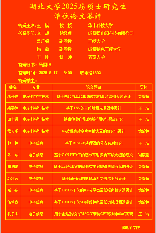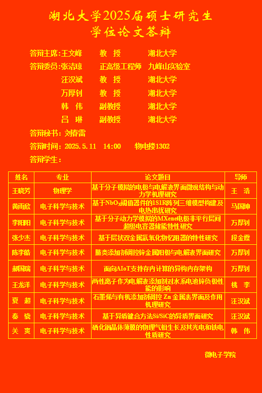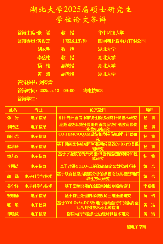 上一篇:微电子学院2025年上半年研究生答辩公告(三)